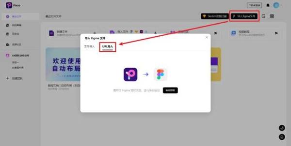 回到 Pixso 中,将复制的 Figma 文件链接粘贴到 URL 导入的输入框中,点击右下角的「导入」,就可以将 Figma 文件导入 Pixso 了。
