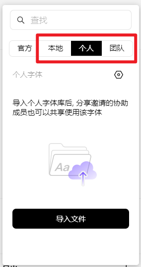 个人字体库 :将本地字体导入个人字体库,分享邀请的协作成员可以共享使用该字体