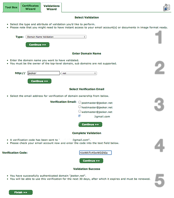 StartSSL上的SSL证书申请流程: