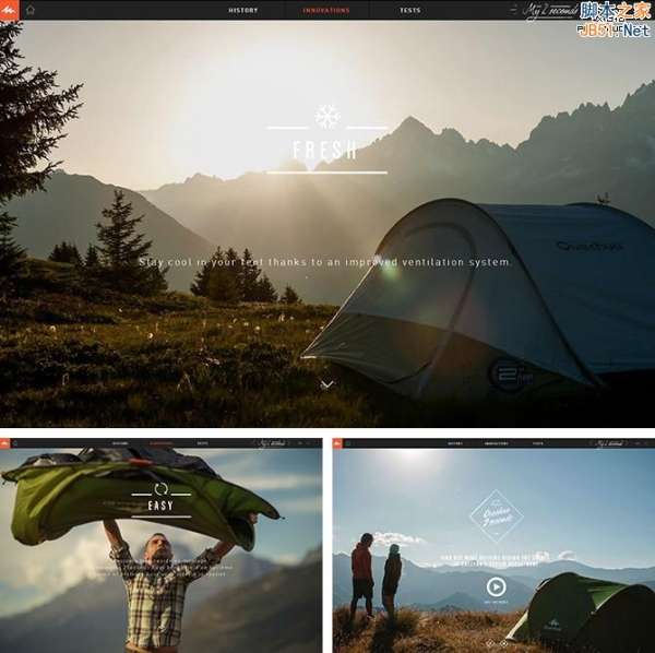 例如,Quechua山地运动品牌,通过几张照片和简单文字的说明,将Quechua帐篷的特点及所处环境真实体现,仿佛一场美妙之旅让人心动。