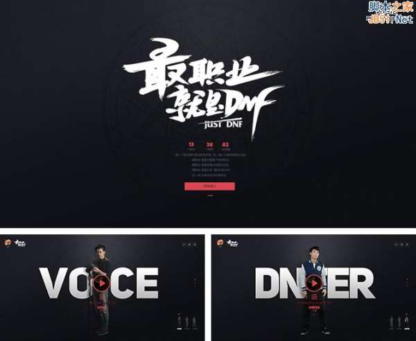 例如:“最职业DNF”主题站,为打造最具丰富并个性差异职业体系,采用精致的大标题设计,结合简单的背景,重点突出又不失美观。