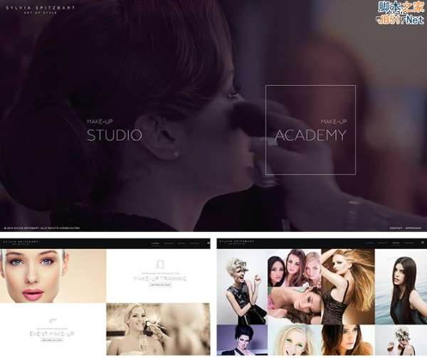 例如:“sylviaspitzbart”化妆工作室,利用纤细线框,将内容很好的分割,页面简洁而大方又不失品质。