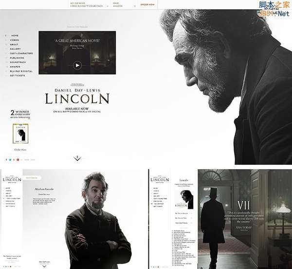 例如:LINCOLN电影网站,运用最常用的黑白两种颜色搭配,让网页如此简约大方,给人留下无限想象空间。