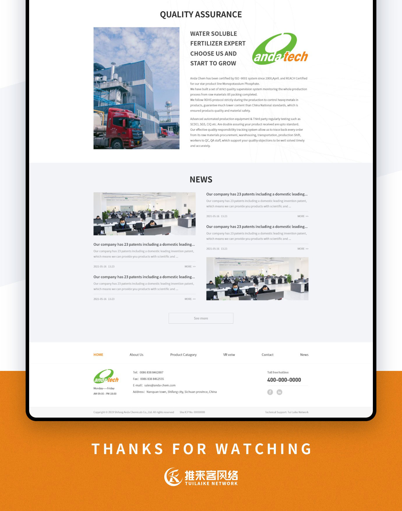 客户是做农业行业的外贸网站,只需要英文,后端也是英文。帮客户植入了一些国外的沟通工具,表单数据这些实现了实时推送功能。