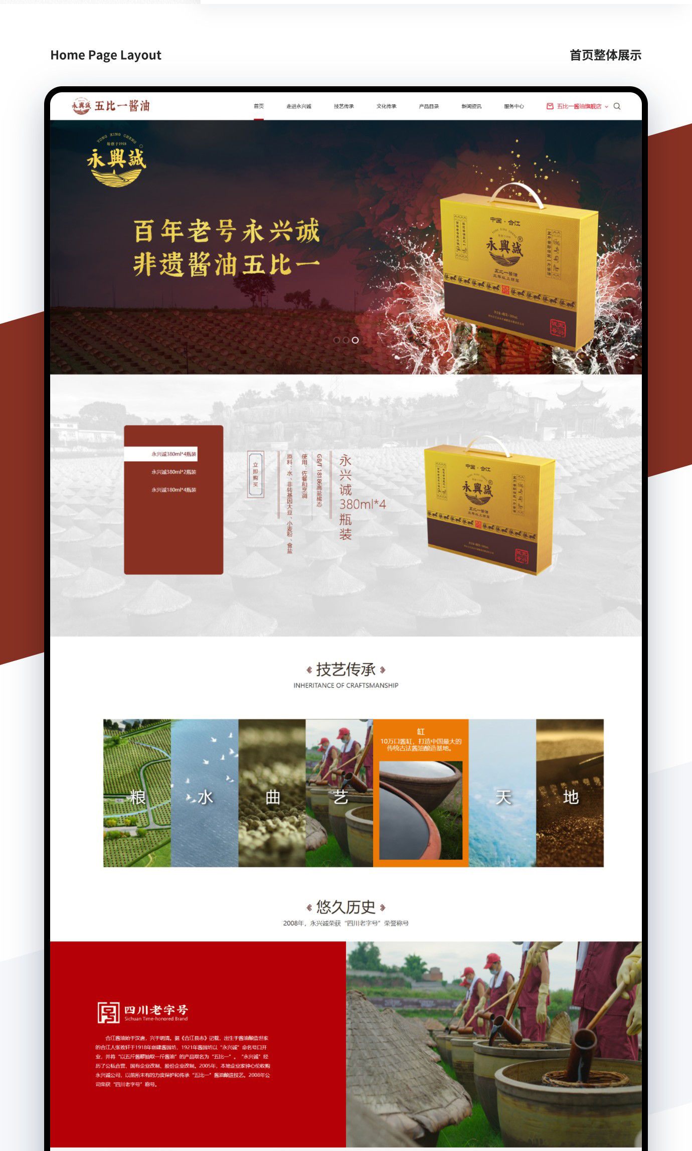 合江县永兴诚酿造有限责任公司,四川老字号——四川合江县永兴诚“五比一”酱油,采用传统手工酿造,其酿造技艺列入“四川省非物质文化遗产”保护名录。酱油“棕红铮亮、粘稠适度、酱味绵长、纯正柔和、挂碗留香。