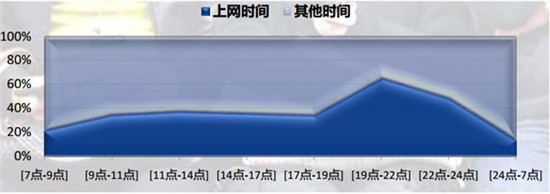 从时间上看,人均日均移动设备上网时间为183分钟,集中在每晚19:00-22:00之间。