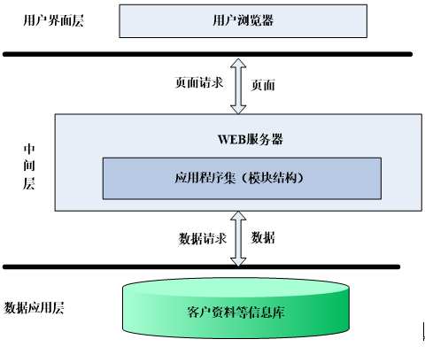 根据本系统的结构和应用服务,同时考虑到整个系统的一体化方案、功能扩展和灵活性,数据库将按以下原则采用集中方式与三层结构相结合的体系结构。